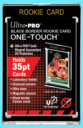 Ultra PRO's ONE-TOUCH holders are premium trading card storage cases designed as the final destination for your collectible trading cards. The two-piece ONE-TOUCH holders are uniquely designed with slide-in hinges and magnetic closure so you'll never have to use a screwdriver again. The holder uses UV-blocking additives to protect your card from harmful UV rays and is made with non-PVC materials to provide acid-free protection - ensuring your valuable hit retains its condition while under the display. Our ONE-TOUCH holders are ideal for presenting prized and super rare gaming cards as well. This model can hold standard cards (2.5" x 3.5") with multiple thickness options.