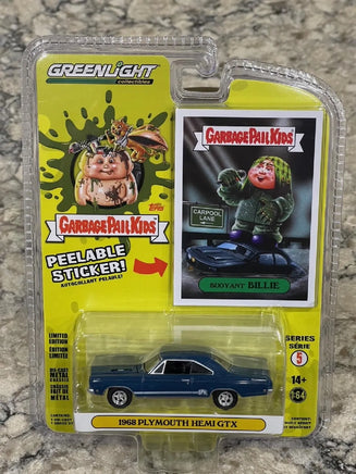 This is a Greenlight Garbage Pail Kids Series 5 Buoyant Billie - 1968 Plymouth HEMI GTX Limited Edition diecast collectible 1/64th scale.