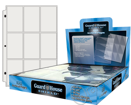 9 Pocket Guardhouse Archival pages can hold and protect 2 1/2 x 3 1/2 photographs, sport cards, gaming cards, coin slabs
