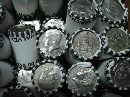 Here we have rolls of random mixed Unsearched Kennedy Half Dollars. I obtained Sealed Fed Reserve boxes of Rolls. These are perfect for having some fun and/or filling the "Coin Books". That is exactly what I did.
