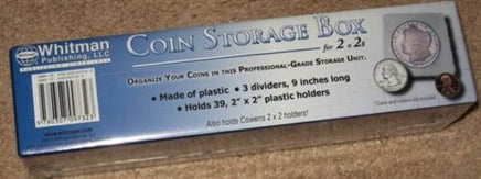 Each Whitman 9 inch coin storage box can store 39 snap lock holders, such as BCW coin snaps, Lighthouse Quadrums, or Guardhouse Tetras.