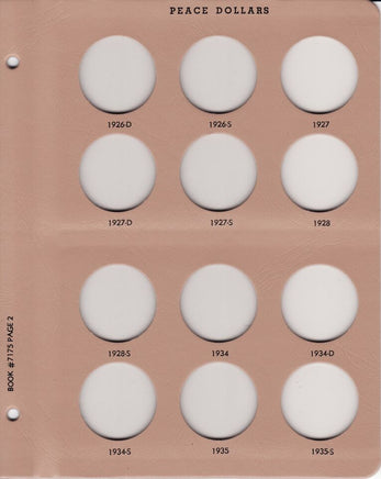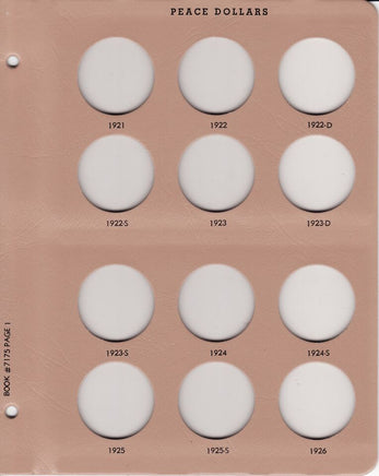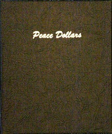 This Dansco Supreme Album for Peace Dollars 1921-1935 (Dansco model number 7175) consists of a brown leatherette binder with loose-leaf hinged pages.