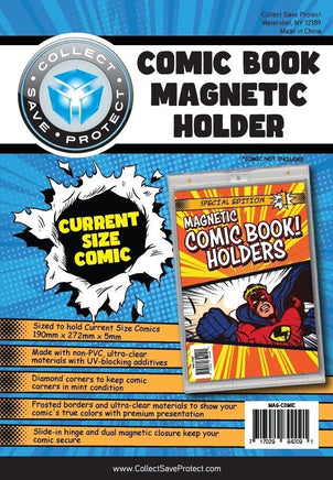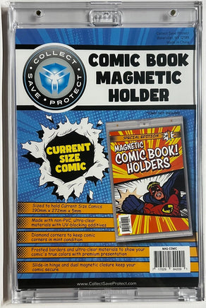 COLLECT*SAVE*PROTECT'S Current Size Comic MAGNETIC holders are premium comic book storage cases designed as the final destination for your collectible comic books. The two-piece MAGNETIC closure holders are uniquely designed with slide-in hinges and dual magnetic closure so you'll never have to use a screwdriver again. The holder uses UV-blocking additives to protect your comic book from harmful UV rays and is made with non-PVC materials to provide acid-free protection - ensuring your valuable hit retains its condition while under the display. This model can hold comic books, artwork, and other collectibles