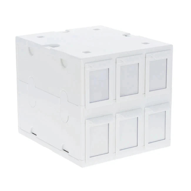 The BCW 6-Drawer Card Catalog is the ultimate trading card storage solution, designed for collectors, hobbyists, and card shop owners looking to organize, protect, and display their sports and gaming card collections. The BCW Six Drawer Card Catalog is made from strong, acid-free plastic in sleek white, offering an attractive and durable storage system for sports or gaming card collections. It's heavy-duty, sturdy, and stackable, and includes 4 feet for added stability. You can attach it to neighboring units with the included clips, and it conveniently fits into the cubicles of an IKEA Kallax or similar shelves. Card Catalogs come assembled, with two exceptions. Six drawer pull handles simply snap into place. Four plastic feet can be added to assist in stacking units.